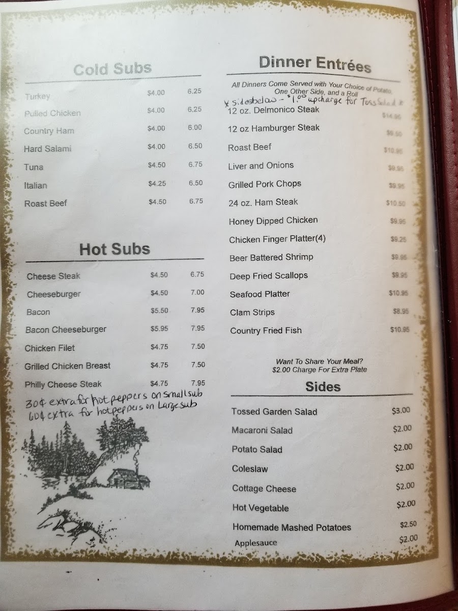The heart of the menu includes delectable cold subs like turkey and tuna, and specials featuring hearty options such as two eggs with toast and meat, or their famed chicken and waffles. For a satisfying meal, try their classic hot roast beef sandwich or the fluffy pancakes paired with eggs and meat.